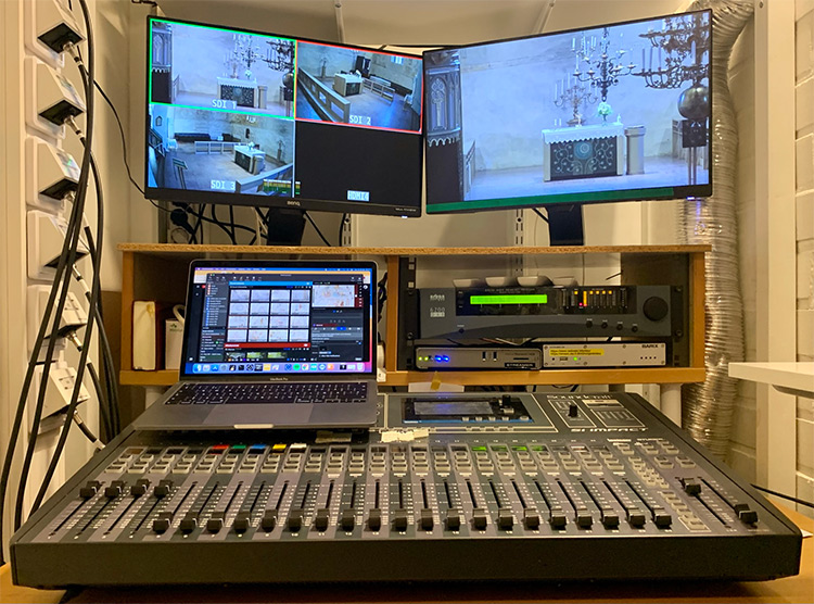 Kuva- ja äänistriimin laadun ja vakauden varmistaa uusi 5G-tasoinen valokuituyhteys, johon kirkon uuden ääni- ja kuvatekniikan komentokeskus on yhdistetty. Kaapelia kellarikerrokseen ja takaisin kulkee parin kilometrin verran, toki tyylikkäästi kätkettynä.