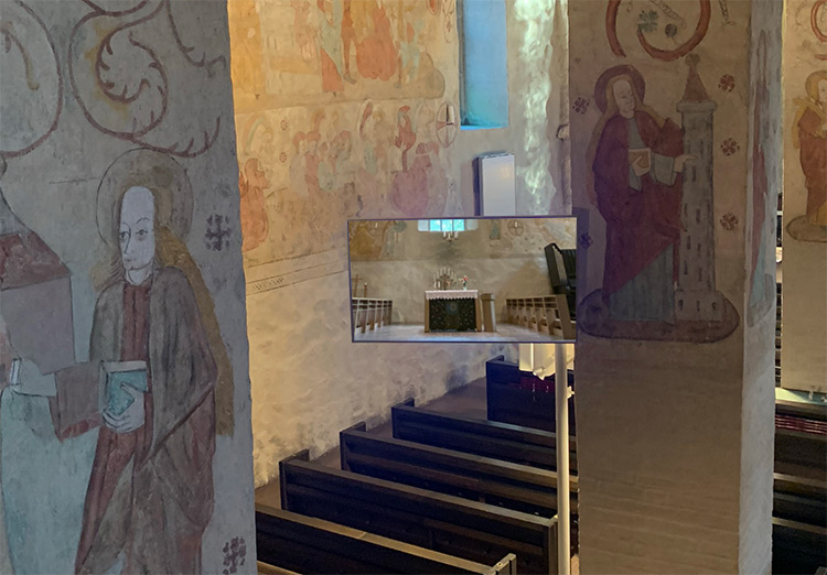 ”Olin positiivisesti yllättynyt, kun Museovirasto suhtautui niin suopeasti, että näytöille saatiin saranoidut telineet kirkkosalin pilareihin. Se edustaa Museovirastolta uutta ajattelua, että kirkkosaleista saadaan tehdä aiempaa monikäyttöisempiä”, Nyman kertoo.