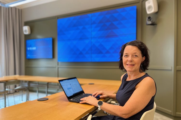 Raklin toimistossa Katja Kärkkäinen (kuvassa) huolehtii kokouksia isännöivien perehdyttämisestä salin tekniikkaan.