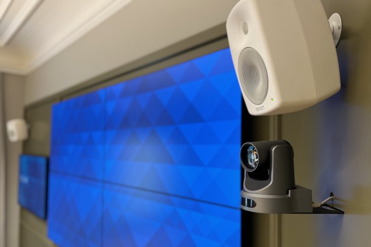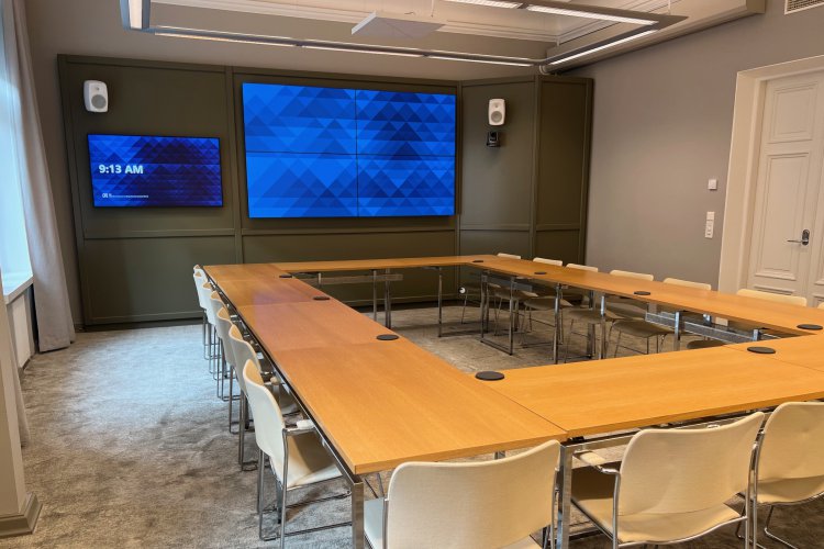 Esimerkiksi äänentoisto on hoidettu kahdella Genelecin 4430A Smart IP -kaiuttimella, ja satsaamalla tuplasti kameroihin ja mikrofoneihin lopputuloksesta syntyi moninkertaisesti parempi. Salin Teams-laitteistona palvelee Crestronin UC-CX100-T ohjauspaneeleineen, ja kokoustamisen joustavuutta tukee BenQ:n langaton Instashow -esitystekniikka, jonka välityksellä osallistujien presentaatiot saadaan kaikkien läsnäolijoiden ulottuville.