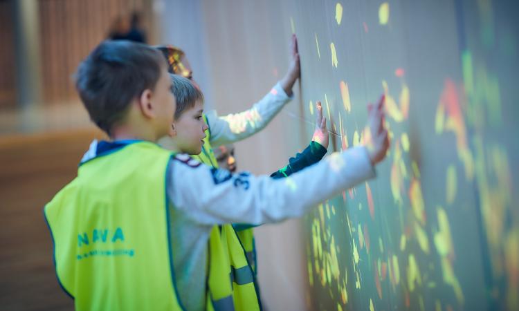 Ympäröivän videoseinän elämystarjonta täydentyy interaktiivisella projisointitekniikalla. Projektoreita on kaikkiaan yhdeksän, joista viidellä on toteutettu lattiaprojisointeja, joiden alueelle astuessaan sensori käynnistää teoksen äänineen. Materiaali videotykeille jaetaan BrightSignin mediatoistimilta.