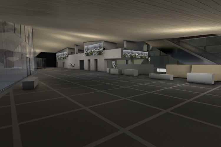 Ykköskerroksen pohjoispäädyssä sijaitsevien ravintolan ja elokuvateatterin lämpiön alueelta löytyy seuraava kolmen videotykin yksikkö, jonka avulla voidaan luoda kookas, yhtenäinen kosketusprojisointitekniikkaan perustuva vuorovaikutteinen kuvapinta.