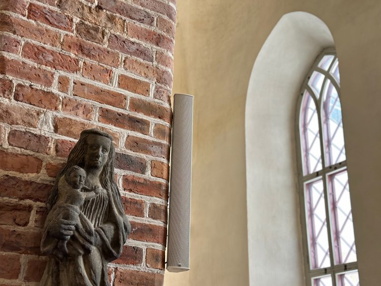 Porvoon tuomiokirkon projektin suunnittelusta vastanneen Granholmin mukaan kaiutinlaajennuksen haasteena oli, ettei kaapeleita voitu uusia tai lisätä, jolloin pelastajaksi osoittautui Pan Acousticsin Pan 2-mallisto (yllä). Se mahdollistaa aktiivisesti suunnattavan linjasäteilijäkaiuttimen toiminnan, vaikka käytössä on vain kaksi johdinta. Kaikki mahdollinen kaiuttimen tarvitsemasta käyttöjännitteestä ohjaukseen ja signaalinsiirtoon liikkuu näitä johtimia pitkin.